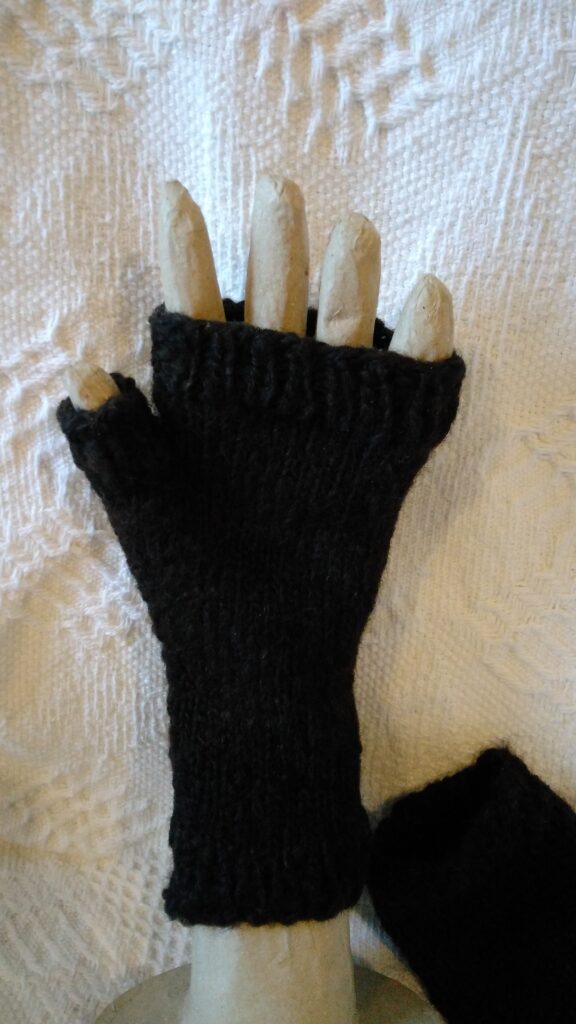 Fingerless gloves in small to medium sizes from home and commercially spun alpaca.
