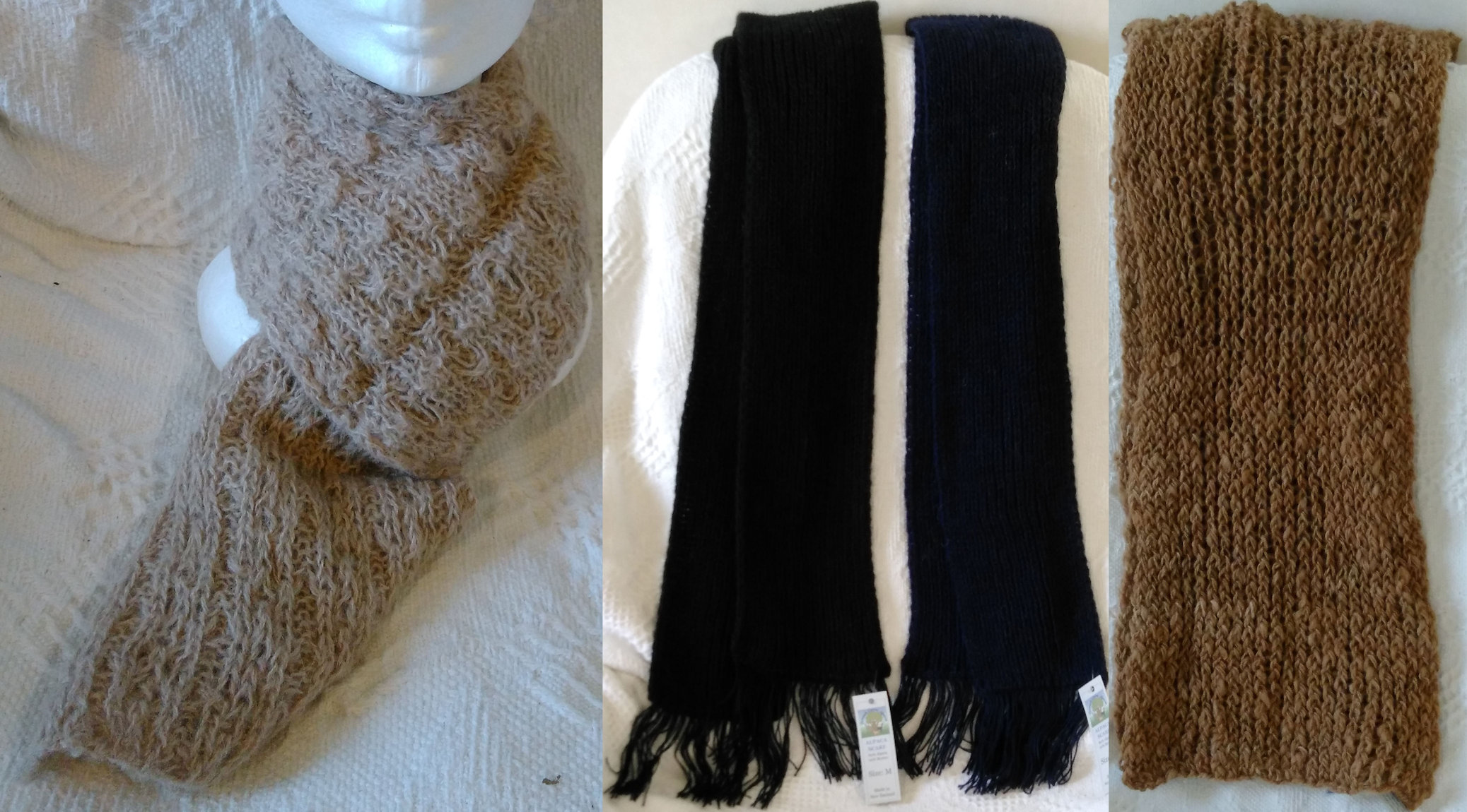 Scarf sizes come in medium, long and wide. Some alpacas scarfs come with tassels.