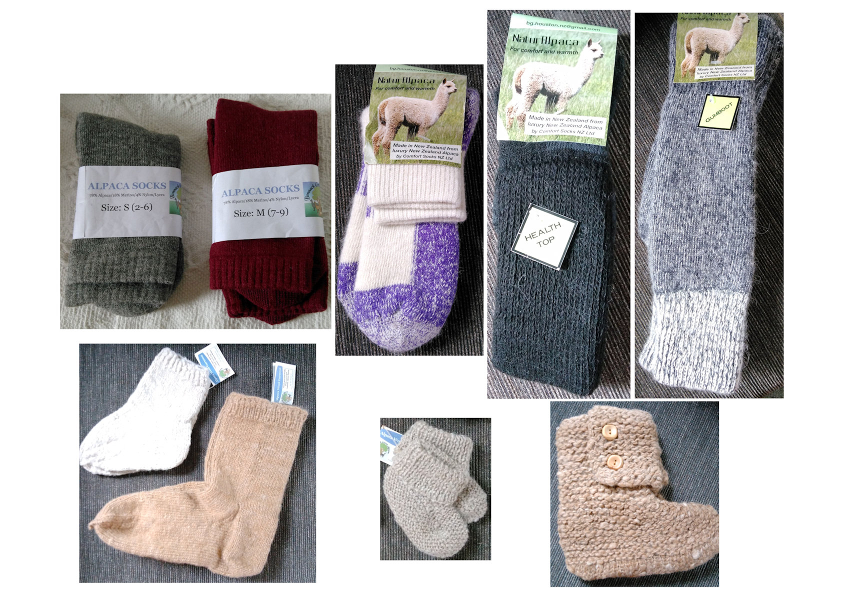 The commercially produced alpaca socks are 80% alpaca and 20% other fibre.